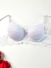 Sutiã de renda, com bojo, com aro e fecho nas costas.